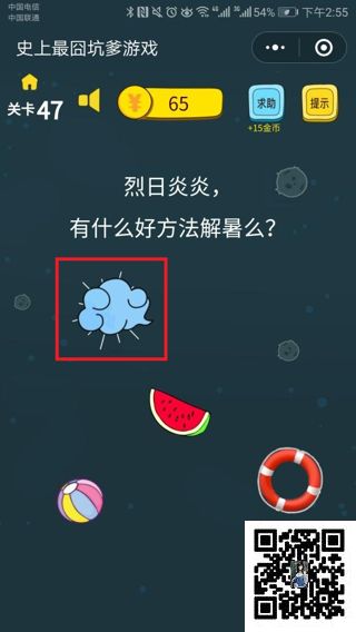 微信史上最坑爹游戲第47關【烈日炎炎有什么好辦法解暑么】答案攻略 ... [更多詳細]