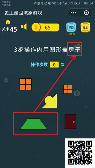 微信史上最坑爹游戲第45關【3步操作內用圖形蓋房子】答案攻略 ... [更多詳細]