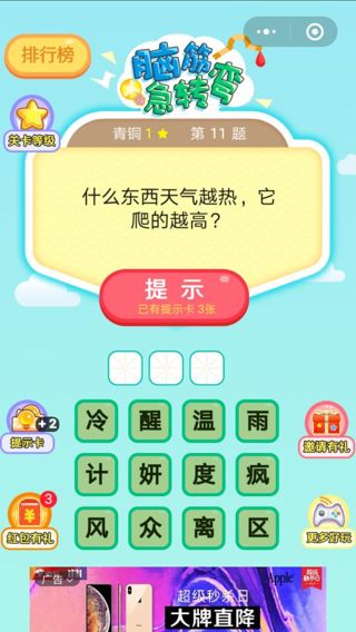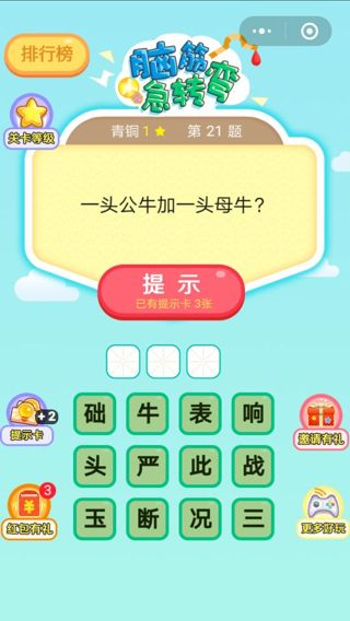 微信益智腦筋急轉彎猜猜看答案_微信小程序益智腦筋急轉彎猜猜看攻略 ... [更多詳細]