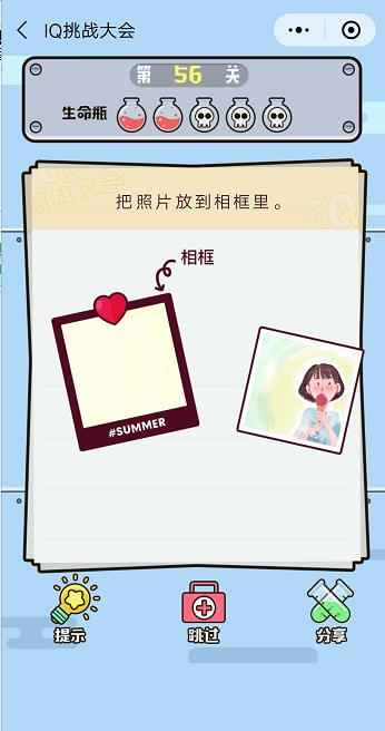 微信IQ挑戰大會第56關【把照片放到相框里】答案攻略 ... [更多詳細]