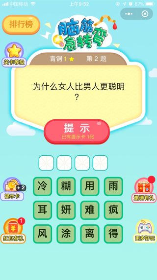 微信腦洞大轉彎答案_微信小程序腦洞大轉彎攻略 ... [更多詳細]