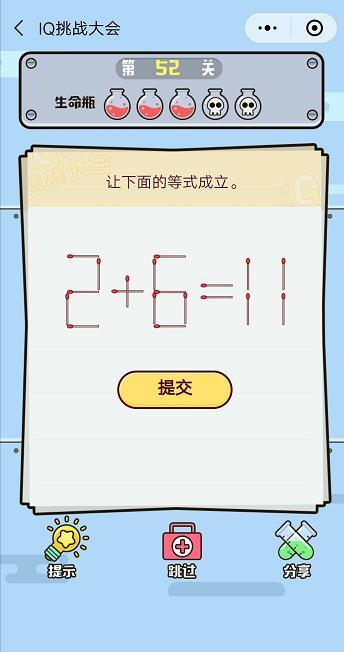 微信IQ挑戰大會第52關【讓下面的等式成立2+6=11】答案攻略 ... [更多詳細]