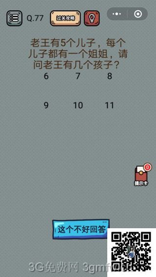 微信最強腦洞游戲第77關【老王有5個兒子每個兒子都有一個姐姐請問老王有幾個孩子】答案攻略 ... [更多詳細]