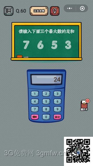 微信最強腦洞游戲第60關【請輸入下面三個最大數的總和】答案攻略 ... [更多詳細]
