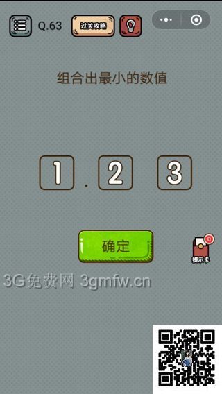 微信最強腦洞游戲第63關【組合出最小的數值】答案攻略 ... [更多詳細]
