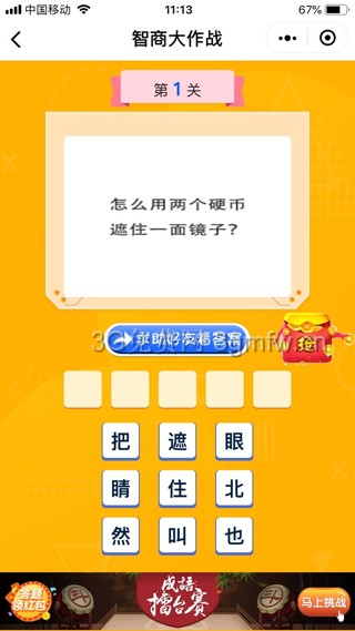 微信智商大作戰第1關【怎么用兩個硬幣遮住一面鏡子】答案攻略 ... [更多詳細]