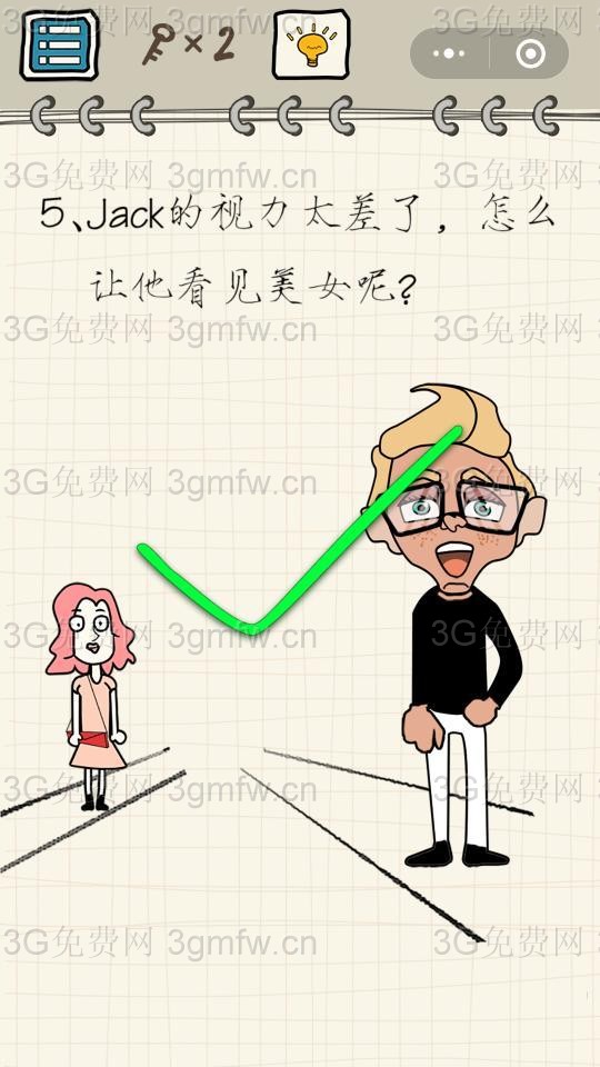 微信智商在哪里第5關(guān)【Jack的視力太差了怎么讓他看見美女呢】答案攻略 ... [更多詳細(xì)]