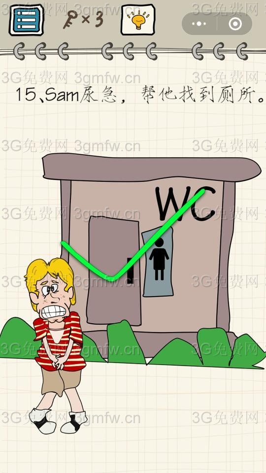 微信智商在哪里第15關(guān)【Sam尿急幫他找到廁所】答案攻略 ... [更多詳細(xì)]