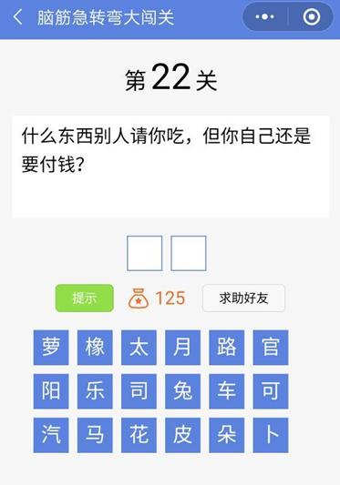 微信腦筋急轉(zhuǎn)彎大闖關(guān)第22關(guān)【什么東西別人請(qǐng)你吃但你自己還是要付錢】答案攻略 ... [更多詳細(xì)]