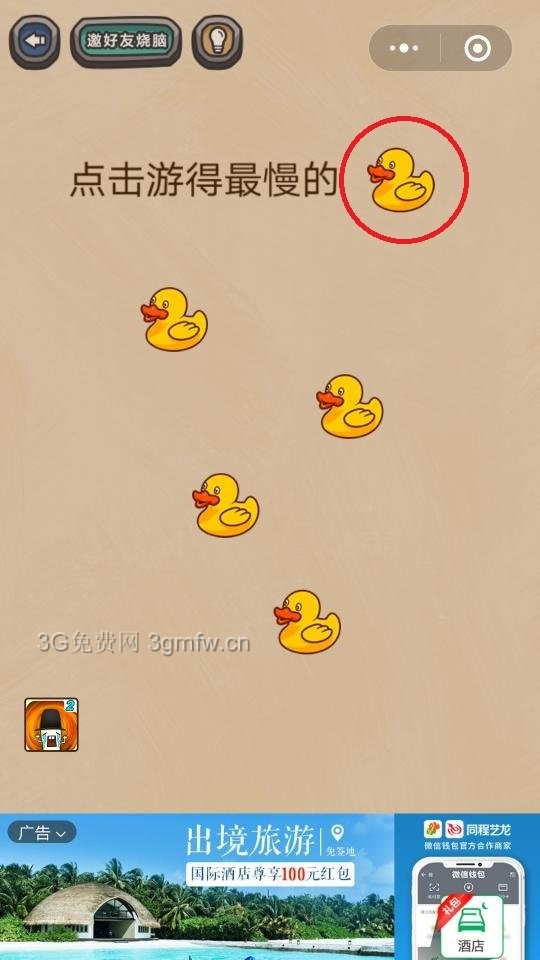 微信最燒腦游戲劈腿2第19關(guān)【點(diǎn)擊游的最慢的鴨子】答案攻略 ... [更多詳細(xì)]