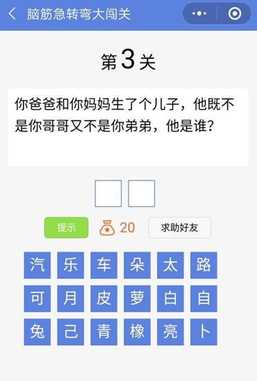 微信腦筋急轉(zhuǎn)彎大闖關(guān)第3關(guān)【你爸爸和你媽媽生了個(gè)兒子他既不是你哥哥又不是你弟弟他是誰(shuí)】答案攻略 ... [更多詳細(xì)]
