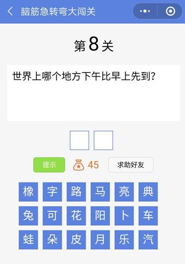 微信腦筋急轉(zhuǎn)彎大闖關(guān)第8關(guān)【世界上哪個(gè)地方下午比早上先到】答案攻略 ... [更多詳細(xì)]