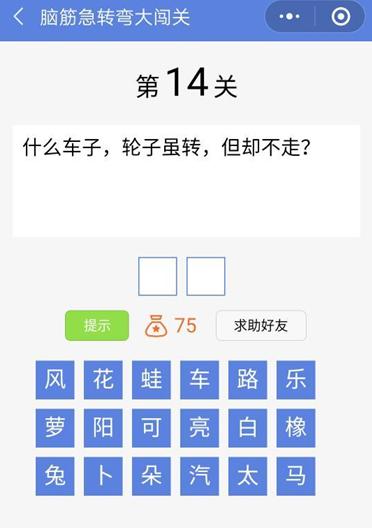 微信腦筋急轉(zhuǎn)彎大闖關(guān)第14關(guān)【什么車子輪子雖轉(zhuǎn)但卻不走】答案攻略 ... [更多詳細(xì)]