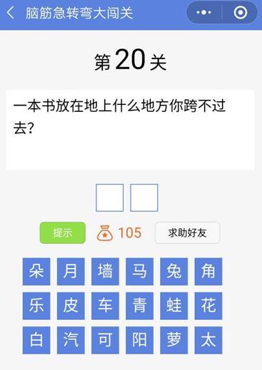 微信腦筋急轉(zhuǎn)彎大闖關(guān)第20關(guān)【一本書放在地上什么地方你跨不過(guò)去】答案攻略 ... [更多詳細(xì)]