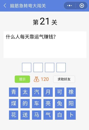 微信腦筋急轉(zhuǎn)彎大闖關(guān)第21關(guān)【什么人每天靠運(yùn)氣賺錢】答案攻略 ... [更多詳細(xì)]