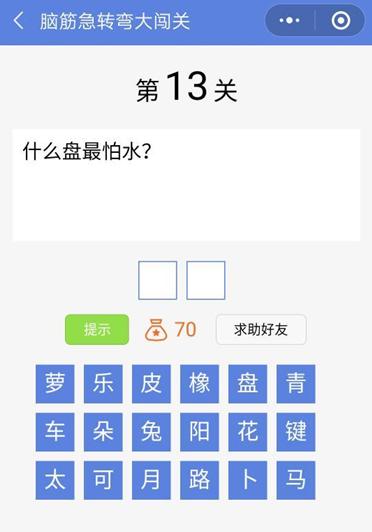 微信腦筋急轉(zhuǎn)彎大闖關(guān)第13關(guān)【什么盤最怕水】答案攻略 ... [更多詳細(xì)]