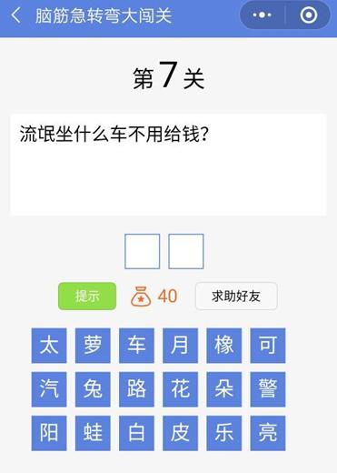 微信腦筋急轉(zhuǎn)彎大闖關(guān)第7關(guān)【流氓坐什么車不用給錢】答案攻略 ... [更多詳細(xì)]