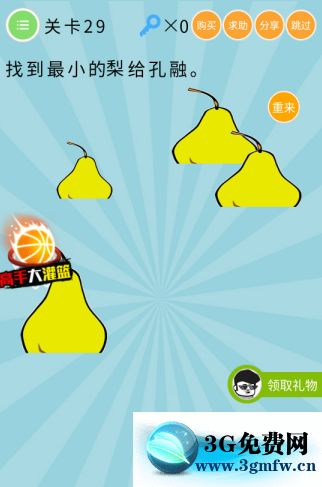 微信最無敵燒破大腦第29關【找到最小的梨給孔融】答案攻略 ... [更多詳細]