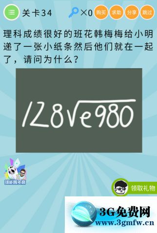 微信最無敵燒破大腦第34關【理科成績很好的班花韓梅梅給小明遞了一張小紙條然后他們就在一起了請問為什么】答案攻略 ... [更多詳細]