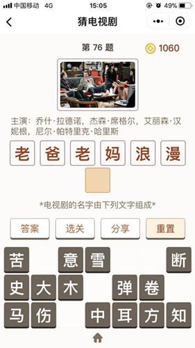 微信猜電視劇第76題答案_微信小程序猜電視劇第76關攻略 ... [更多詳細]