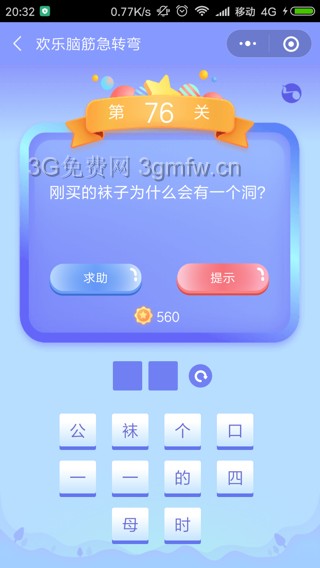 微信歡樂腦筋急轉(zhuǎn)彎第76關(guān)【剛買的襪子為什么會有一個洞】答案 ... [更多詳細]