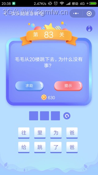 微信歡樂腦筋急轉(zhuǎn)彎第83關(guān)【毛毛從20樓跳下去為什么沒有事】答案 ... [更多詳細]
