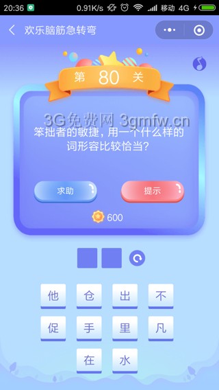 微信歡樂腦筋急轉(zhuǎn)彎第80關(guān)【笨拙者的敏捷用一個什么樣的詞形容比較恰當(dāng)】答案 ... [更多詳細]
