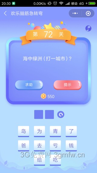 微信歡樂腦筋急轉(zhuǎn)彎第72關(guān)【海中綠洲打一城市】答案 ... [更多詳細]