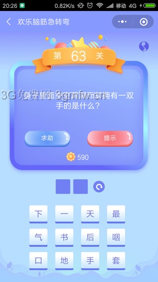 微信歡樂腦筋急轉(zhuǎn)彎第63關(guān)【身子里面空空洞洞而卻擁有一雙手的是什么】答案 ... [更多詳細]