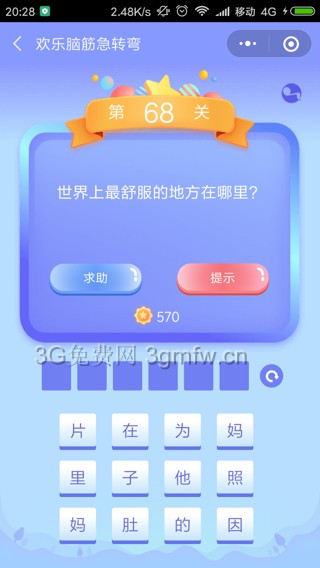 微信歡樂腦筋急轉(zhuǎn)彎第68關(guān)【世界上最舒服的地方在哪里】答案 ... [更多詳細]