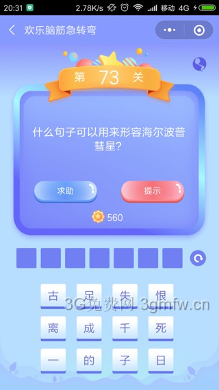 微信歡樂腦筋急轉(zhuǎn)彎第73關(guān)【什么句子可以用來形容海爾波普彗星】答案 ... [更多詳細]