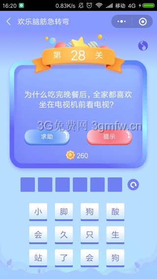 微信歡樂腦筋急轉彎第28關【為什么吃完晚餐后全家都喜歡坐在電視機前看電視】答案 ... [更多詳細]