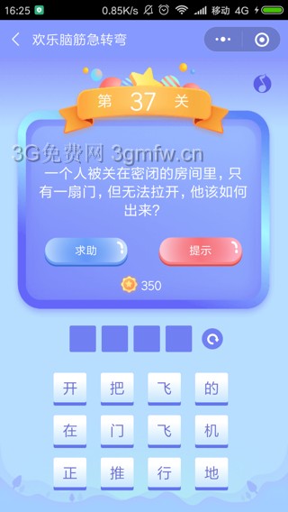 微信歡樂腦筋急轉彎第37關【一個人被關在密閉的房間里只有一扇門但無法拉開他該如何出來】答案 ... [更多詳細]