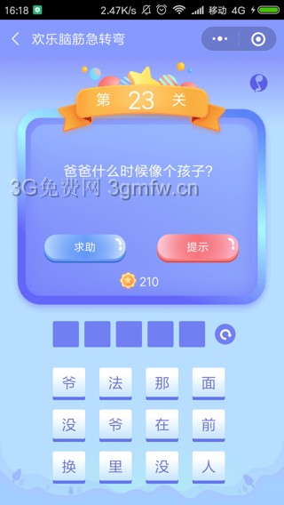 微信歡樂腦筋急轉彎第23關【爸爸什么時候像個孩子】答案 ... [更多詳細]