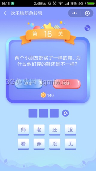 微信歡樂腦筋急轉彎第16關【兩個小朋友都買了一樣的鞋為什么他們穿的鞋還是不一樣】答案 ... [更多詳細]