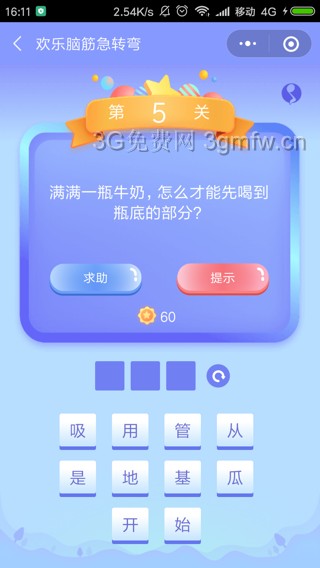 微信歡樂腦筋急轉彎第5關【滿滿一瓶牛奶怎么才能先喝到瓶底的部分】答案攻略 ... [更多詳細]