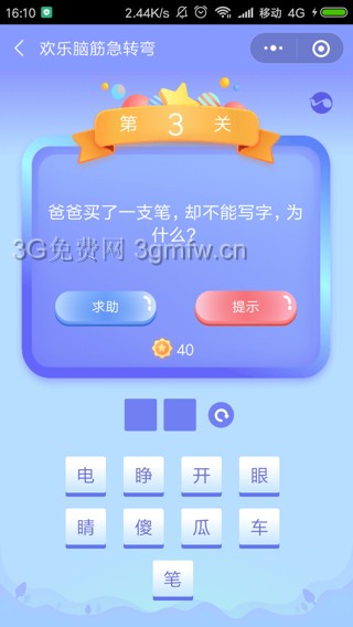 微信歡樂腦筋急轉彎第3關【爸爸買了一支筆卻不能寫字為什么】答案攻略 ... [更多詳細]