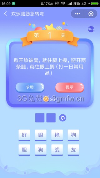 微信歡樂腦筋急轉彎第1關【掀開熱被窩就往腿上摸掰開兩條腿就往眼上擱打一日常用品】答案攻略 ... [更多詳細]