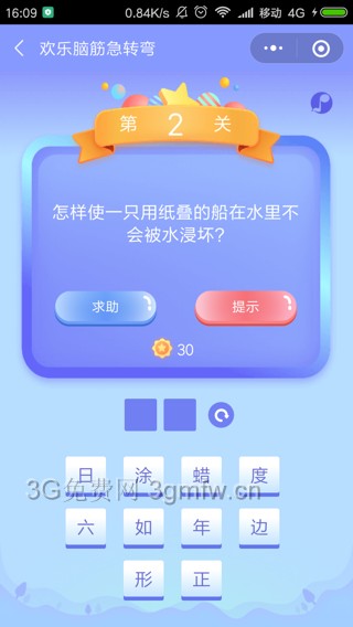 微信歡樂腦筋急轉彎第2關【怎樣使一只用紙疊的船在水里不會被水浸壞】答案攻略 ... [更多詳細]