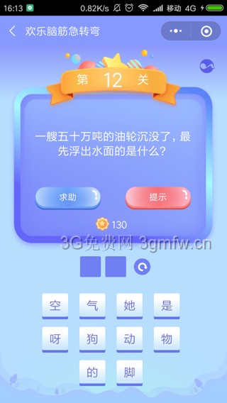 微信歡樂腦筋急轉彎第12關【一艘五十萬噸的油輪沉沒了最先浮出水面的是什么】答案 ... [更多詳細]