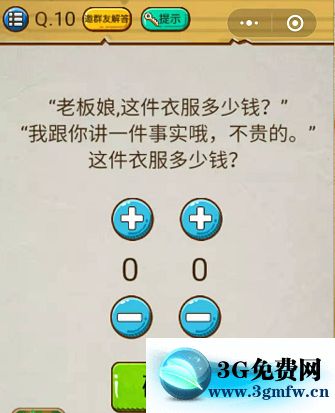 微信史上最強的大腦2第10關【老板娘這件衣服多少錢我跟你講一件事實哦不貴的這件衣服多少錢】答案攻略 ... [更多詳細]