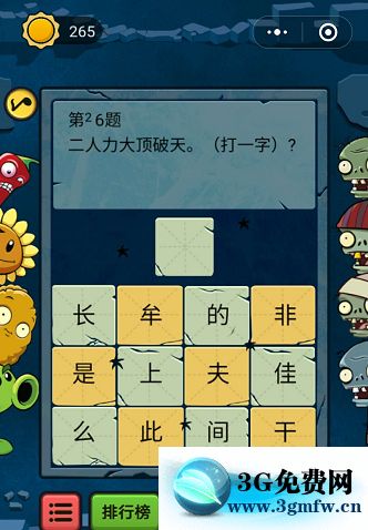 微信腦筋急轉彎大亂斗第26關【二人力大頂破天打一字】答案攻略 ... [更多詳細]