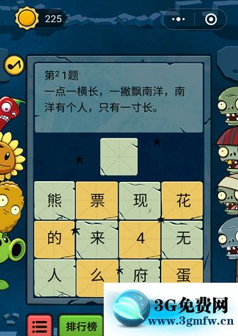 微信腦筋急轉彎大亂斗第21關【一點一橫長一撇飄南洋南洋有個人只有一寸長】答案攻略 ... [更多詳細]