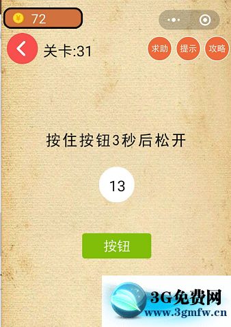 微信最強燒腦游戲腦力吃雞大作戰第31關【按住按鈕3秒后松開】攻略答案 ... [更多詳細]