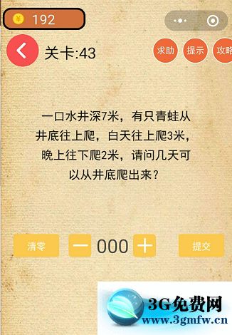 微信最強燒腦游戲腦力吃雞大作戰第43關【請問幾天可以從井底爬出來】攻略答案 ... [更多詳細]