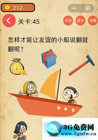 微信最強燒腦游戲腦力吃雞大作戰第45關【怎樣才能讓友誼的小船說翻就翻呢】攻略答案 ... [更多詳細]