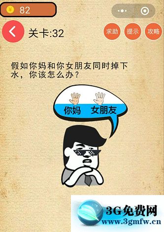微信最強燒腦游戲腦力吃雞大作戰第32關【假如你媽和你女朋友同時掉下水你應該怎么辦】攻略答案 ... [更多詳細]