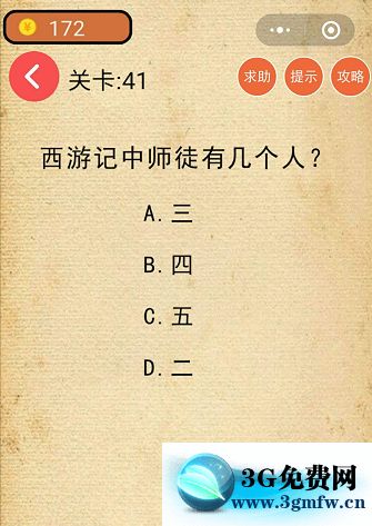 微信最強燒腦游戲腦力吃雞大作戰第41關【西游記中師徒有幾個人】攻略答案 ... [更多詳細]