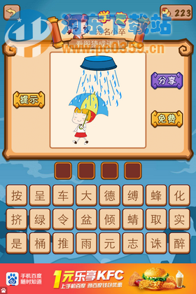 瘋狂才成語2:一個女孩打著一把傘,頭頂一個盆子在灑水答案是什么? ... [更多詳細]