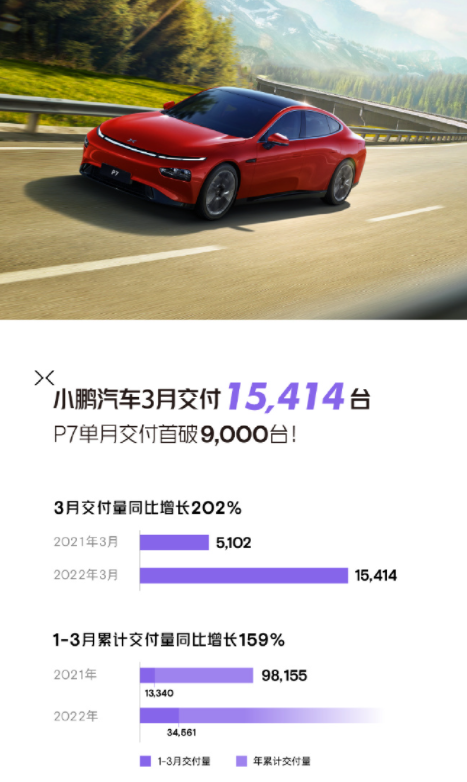 小鵬汽車3月交付量為15414輛 同比增長202% ... [更多詳細]